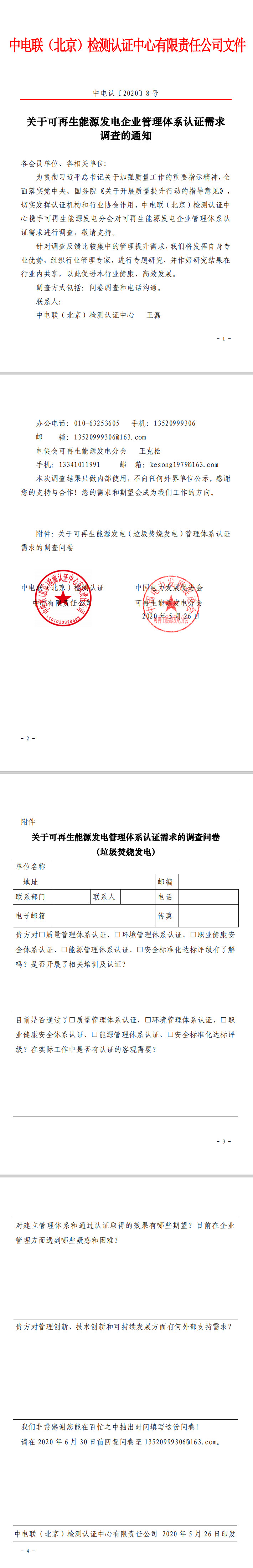 關(guān)于可再生能源發(fā)電企業(yè)管理體系認證需求調(diào)查的通知
