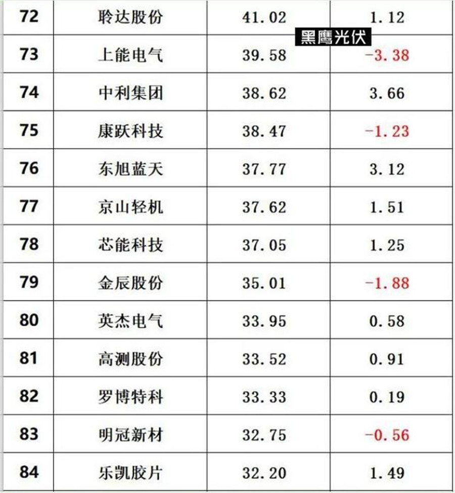 在黑鷹光伏整理出的最新的光伏總市值排行榜上,排在前15的企業(yè),總市值在過去幾個(gè)交易日里都出現(xiàn)了下跌