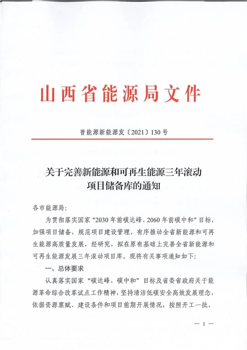 根據(jù)文件,為落實(shí)雙碳目標(biāo)以及省委省政府關(guān)于能源革命綜合改革試點(diǎn)工作,按照開工一批、謀劃一批、儲(chǔ)備一批的思路,建設(shè)完善三年滾動(dòng)項(xiàng)目?jī)?chǔ)備庫。(左右滑動(dòng)查看文件)