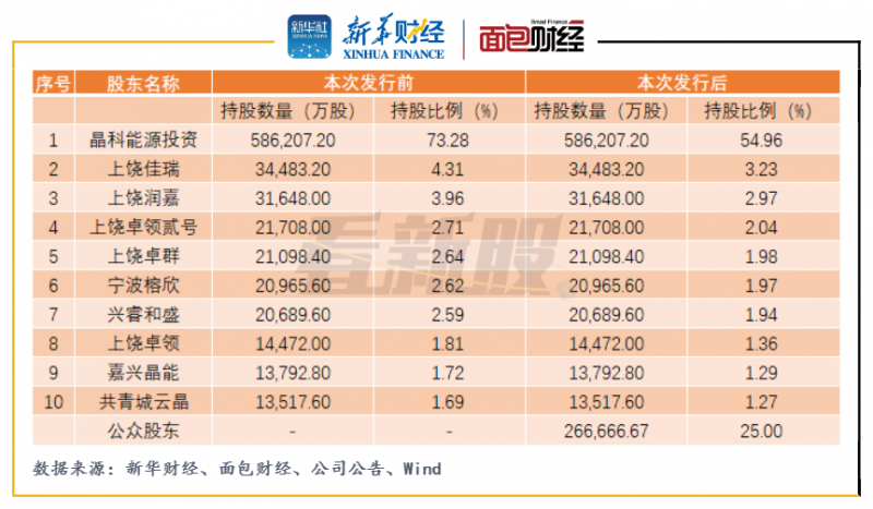 圖5:晶科能源公開發(fā)行股票前后前十大股東情況