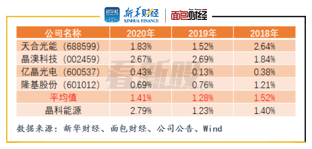 圖4:2018至2020年晶科能源與可比公司財務(wù)費用率