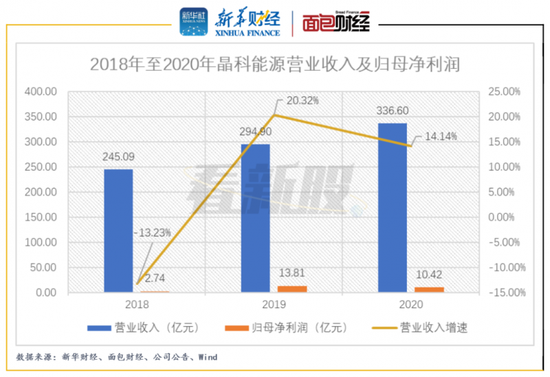 圖2:2018年至2020年晶科能源營業(yè)收入及歸母凈利潤