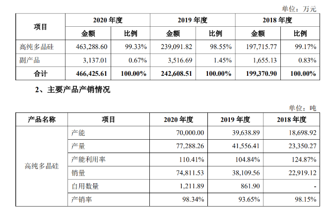 根據(jù)硅業(yè)分會數(shù)據(jù),2020 年度國內多晶硅產(chǎn)量約為 39.6 萬噸,該公司對應期間的多晶硅產(chǎn)量為 7.73 萬噸,占國內多晶硅產(chǎn)量的 19.52%;2020 年度國內單晶硅片用料產(chǎn)量為 32.6 萬噸,占國內多晶硅產(chǎn)量的 82.4%,該公司在占據(jù)主流的單晶硅片用料的市占率為 22.68%。
