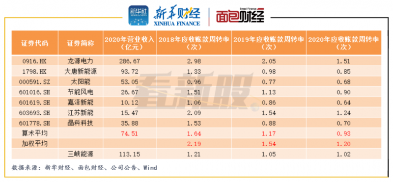 此外,補貼款收入在營業(yè)收入中占比較大,且補貼款結算周期長,2020年三峽能源的應收賬款周轉率為1.02次,與行業(yè)龍頭龍源電力應收賬款周轉水平仍有較大差距。
