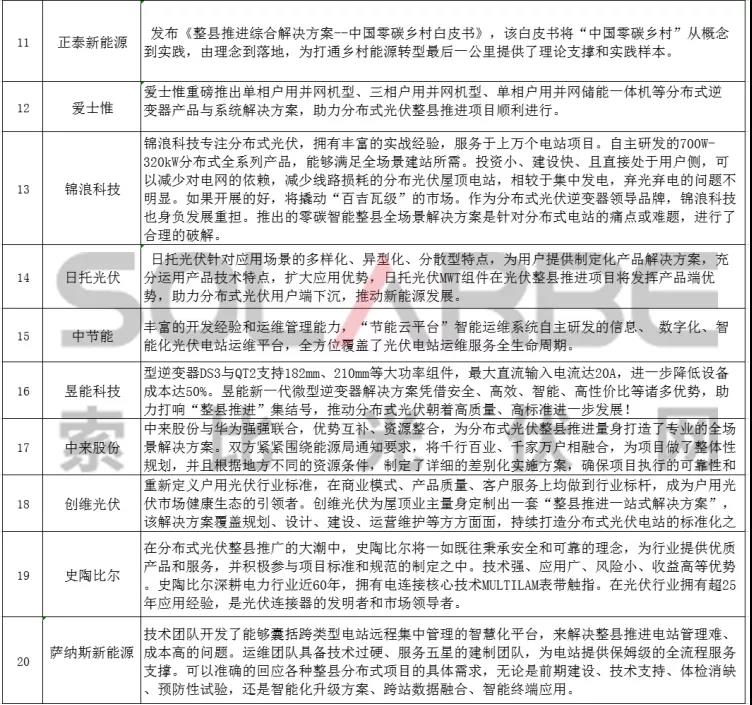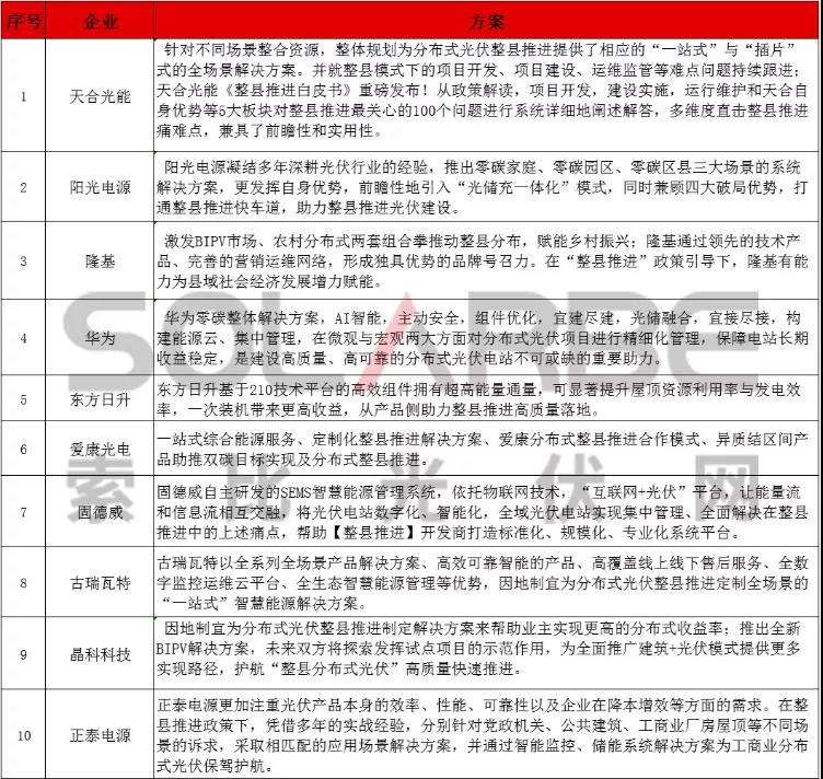 以下是由索比光伏網(wǎng)整理的25家企業(yè)就分布式光伏整縣推進(jìn)提出的解決方案,一起來看看吧 。