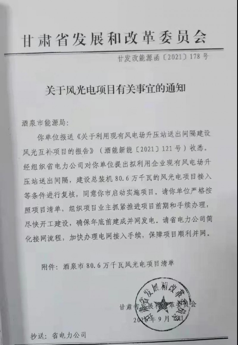 根據(jù)文件,酒泉該批次項目為利用現(xiàn)有風(fēng)電場升壓站送出間隔建設(shè)的風(fēng)光互補項目,省電力公司已經(jīng)對該批項目的接入條件進(jìn)行了復(fù)核。各項目業(yè)主需抓緊推進(jìn)項目前期和手續(xù)辦理,盡快開工建設(shè),確保年底前建成并網(wǎng)發(fā)電。省電力公司要簡化接網(wǎng)流程,加快辦理電網(wǎng)接入手續(xù)。