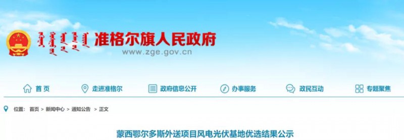 準格爾旗公示蒙西鄂爾多斯3.4GW外送項目風電、光伏基地優(yōu)選結(jié)果