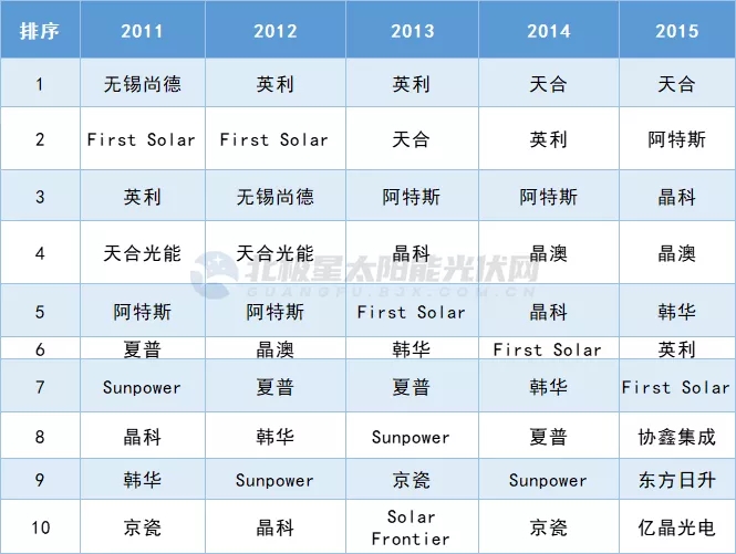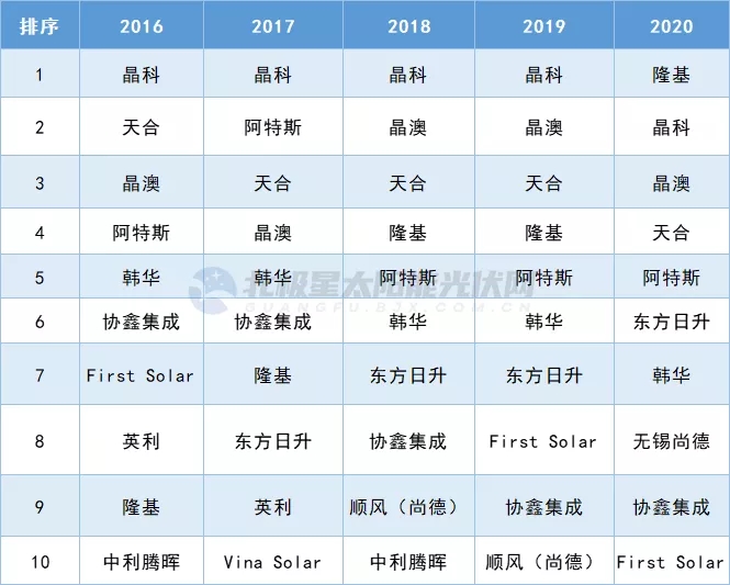 風(fēng)云十年 全球光伏組件出貨TOP 10榜單更替!