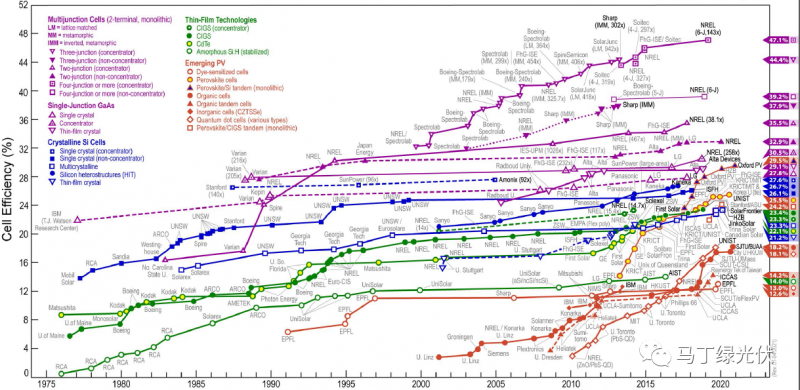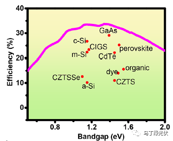 4.像鈣鈦礦、碲化鎘、銅銦鎵硒這類(lèi)的材料,能帶寬度大于晶體硅電池,能夠用于制備晶體硅疊層電池,拓寬光譜的利用率,進(jìn)一步提高太陽(yáng)能電池的理論效率。