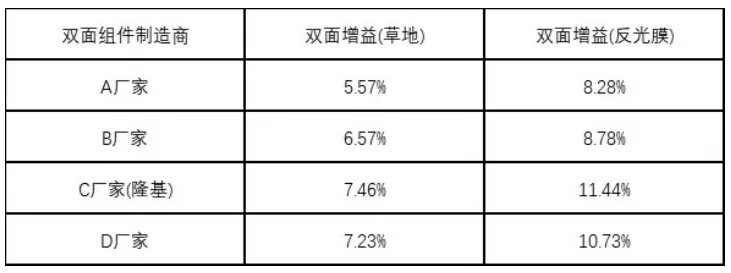 假設(shè)系統(tǒng)成本3.5元/W,同理,多發(fā)電的價(jià)值可折算為3.5元/W*11%=0.38元/W,也即雙面組件可實(shí)現(xiàn)38分/W的溢價(jià)。