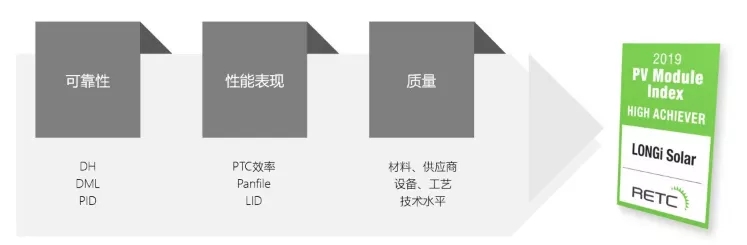 · 2019年,美國RETC實(shí)驗(yàn)室根據(jù)46家晶硅與薄膜組件制造企業(yè)送測的2500多塊組件的評估結(jié)果,首次發(fā)布了其“PV Module Index”,隆基組件憑借在可靠性、性能表現(xiàn)、質(zhì)量三個(gè)維度18項(xiàng)指標(biāo)中的全優(yōu)表現(xiàn),成為兩家獲得“High Achiever”獎(jiǎng)的企業(yè)之一(另一家為異質(zhì)結(jié)組件制造商松下)。