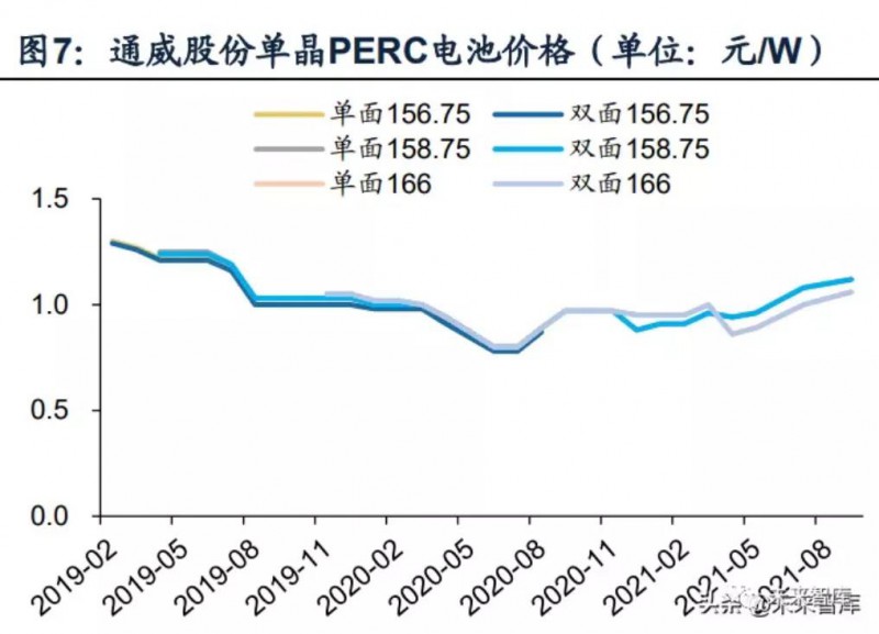 單雙面電池/組件幾乎同價(jià),雙面增益滲透率不斷提升。根據(jù)Wind,通威股份PERC單雙面電池片報(bào)價(jià)已趨于一致。根據(jù)Solarzoom,一線(xiàn)廠商單雙面組件成交價(jià)差也在0.02元/W以?xún)?nèi)。由于雙面組件背面發(fā)電增益帶來(lái)的性?xún)r(jià)比提升,滲透率正在快速提升,根據(jù)CPIA統(tǒng)計(jì),雙面組件市場(chǎng)份額已從2018年的2%提升至2020年的30%,預(yù)計(jì)2025年有望達(dá)到60%以上。