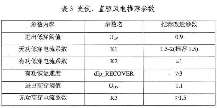 并推薦了新能源場站技改的技術(shù)參數(shù)要求,如下表所示。