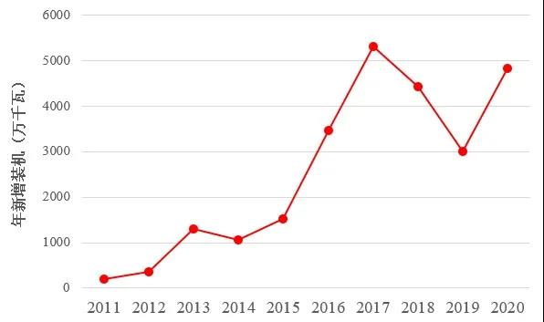 圖:國內(nèi)近10年光伏年新增裝機規(guī)模