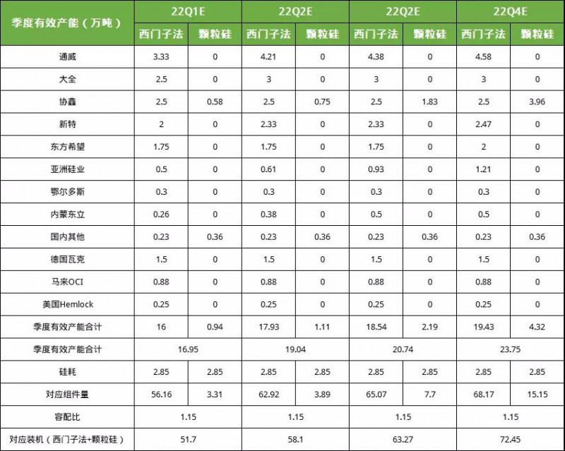 3. 22年顆粒硅潛在市場(chǎng)需求有望達(dá)22萬(wàn)噸