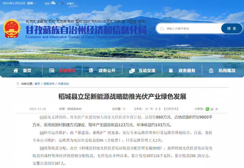 ⑶統(tǒng)籌收益分配。出臺《稻城縣村級光伏扶貧電站收益分配管理實(shí)施細(xì)則》,按照村級光伏扶貧電站發(fā)電收益形成村集體經(jīng)濟(jì)的原則分配收益。光伏電站并網(wǎng)以來,累計(jì)發(fā)電3857124千瓦時,累計(jì)收益289.28萬元,安置公益崗位167人。