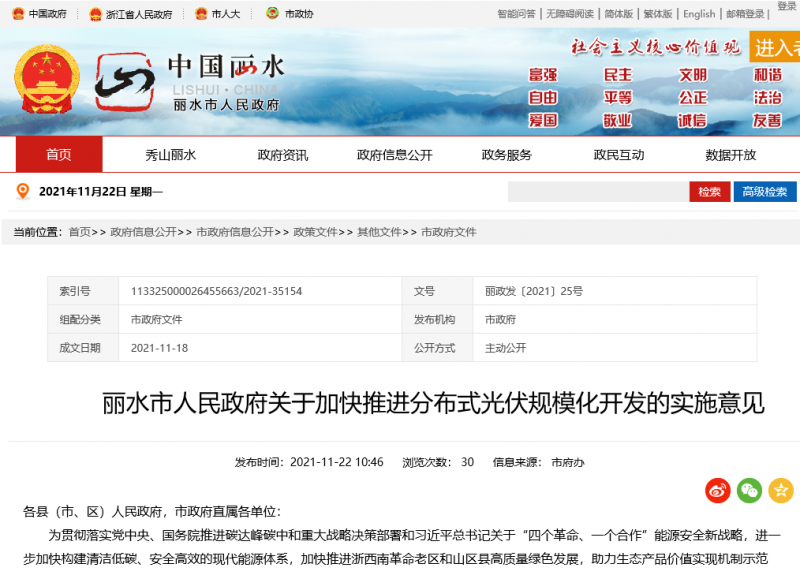 為貫徹落實(shí)黨中央、國(guó)務(wù)院推進(jìn)碳達(dá)峰碳中和重大戰(zhàn)略決策部署和習(xí)近平總書記關(guān)于“四個(gè)革命、一個(gè)合作”能源安全新戰(zhàn)略,進(jìn)一步加快構(gòu)建清潔低碳、安全高效的現(xiàn)代能源體系,加快推進(jìn)浙西南革命老區(qū)和山區(qū)縣高質(zhì)量綠色發(fā)展,助力生態(tài)產(chǎn)品價(jià)值實(shí)現(xiàn)機(jī)制示范區(qū)、城鄉(xiāng)共同富裕先行區(qū)建設(shè),根據(jù)國(guó)家和浙江省關(guān)于加快光伏應(yīng)用發(fā)展有關(guān)要求和整縣(市、區(qū))推進(jìn)分布式光伏規(guī)?;_(kāi)發(fā)試點(diǎn)工作部署,現(xiàn)就推動(dòng)我市分布式光伏規(guī)模化開(kāi)發(fā)提出如下意見(jiàn)。