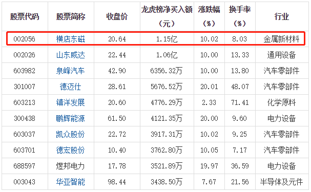 橫店?yáng)|磁入選龍虎榜,當(dāng)日凈買入額達(dá)到1.15億