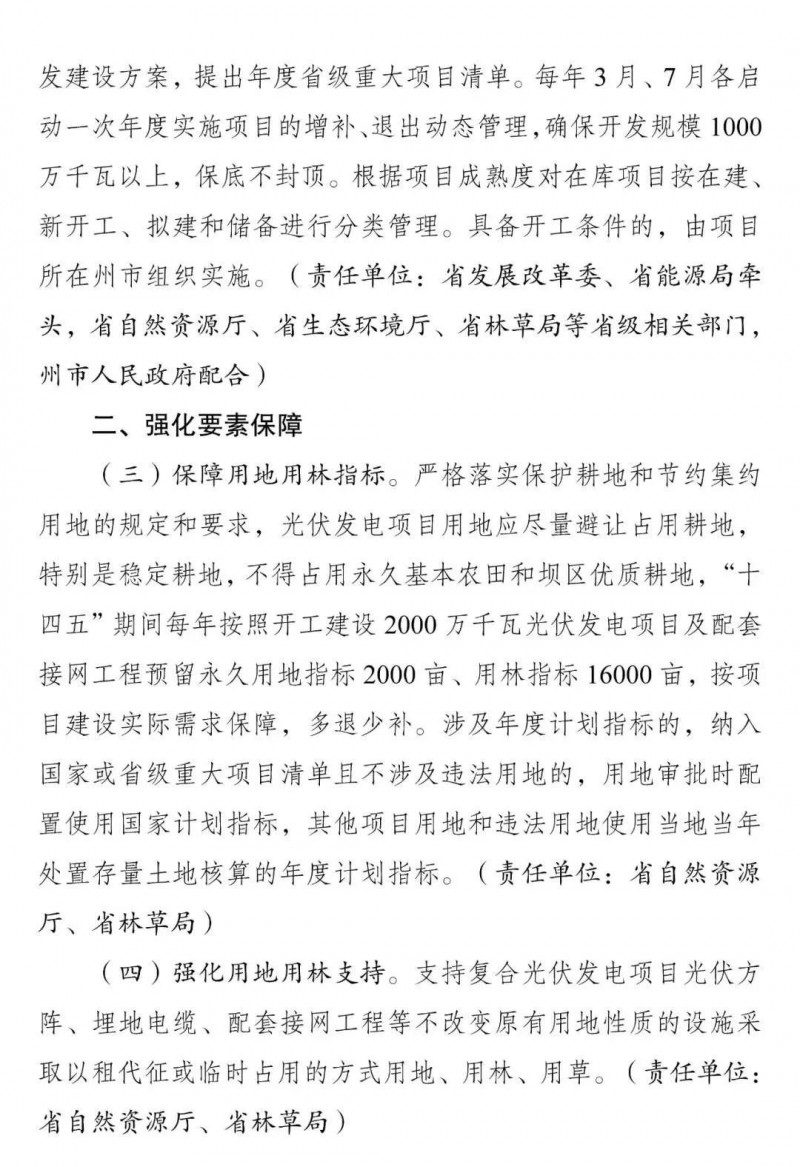 “十四五”期間,光伏項(xiàng)目確保每年開工20GW以上,并預(yù)留配套接網(wǎng)工程用地2000畝和用林指標(biāo)16000畝。在不改變原用地性質(zhì)的條件下,依法減免城鎮(zhèn)土地使用稅和耕地占用稅。