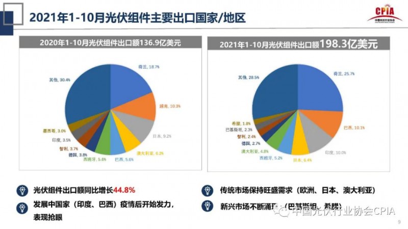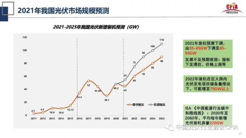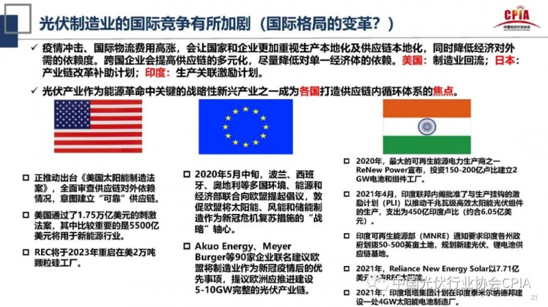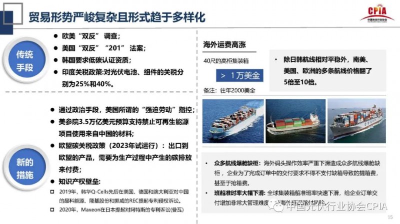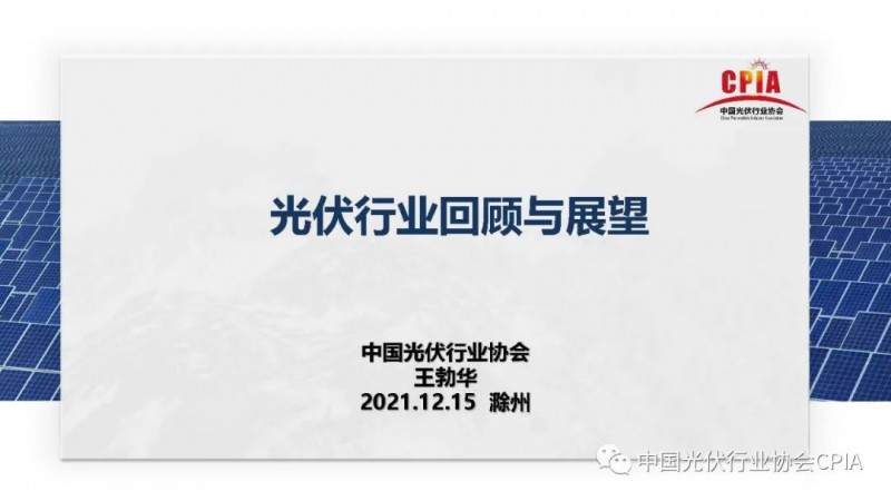 2021年12月15日,“2021中國光伏行業(yè)年度大會暨(滁州)光伏創(chuàng)新發(fā)展高峰論壇”在滁州港匯喜來登酒店隆重舉行。會上,中國光伏行業(yè)協(xié)會名譽理事長王勃華做中國光伏行業(yè)的發(fā)展機遇與挑戰(zhàn)分析。