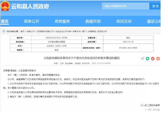 近日,云和縣發(fā)展和改革局發(fā)布《關(guān)于戶用光伏發(fā)電項目補助有關(guān)事項的通知》,同時,就該通知做了詳細(xì)解讀。