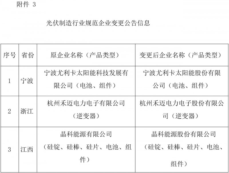 3.光伏制造行業(yè)規(guī)范企業(yè)變更公告信息