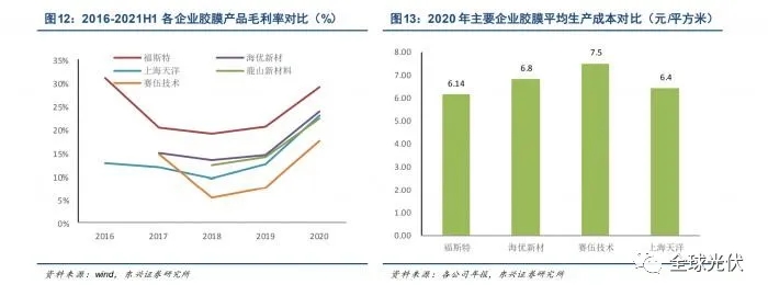 東興證券認(rèn)為,上游粒子廠商陸續(xù)投產(chǎn),光伏級(jí)粒子供給瓶頸將得到緩解,2021年原料成本端大幅上漲的壓力大概率不會(huì)延續(xù)到2022年,光伏膠膜成本有望得到進(jìn)一步控制和降低。與此同時(shí),受益光伏裝機(jī)需求增長,預(yù)計(jì)膠膜售價(jià)有望持續(xù)堅(jiān)挺。對(duì)于相關(guān)標(biāo)的來說,相較2021年,今年膠膜生產(chǎn)企業(yè)將會(huì)展現(xiàn)成本優(yōu)勢,毛利率有望大幅上漲。綜合來看,膠膜行業(yè)議價(jià)能力和盈利能力都將有提升和改善。
