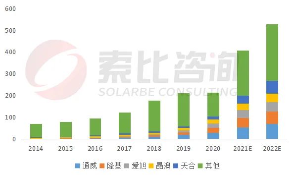 2021年底全球電池片產(chǎn)能達407GW,預計2022年底達540GW,產(chǎn)能過剩。