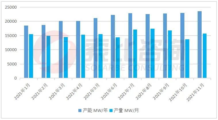 2021年底中國硅料總產(chǎn)能78萬噸,硅料總產(chǎn)量達48.78萬噸,預計2022年底硅料總產(chǎn)能達115萬噸,但2022年H1硅料仍持相對緊缺的狀態(tài),下半年或有緩解。