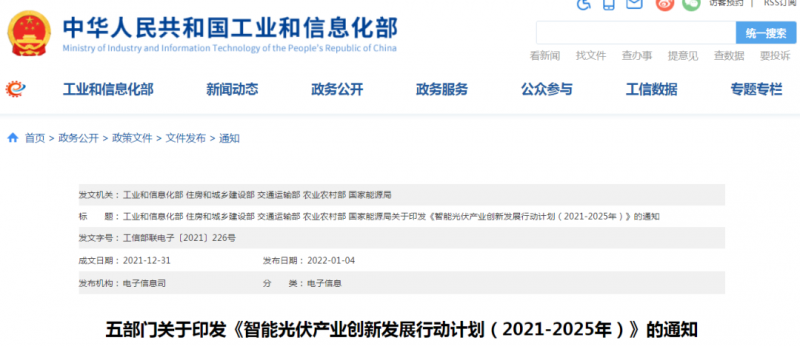 2022年1月4日,工信部等五部門聯(lián)合印發(fā)《智能光伏產(chǎn)業(yè)創(chuàng)新發(fā)展行動計劃(2021-2025年)》,其中的主要任務就包括助力“智能光伏交通”在內(nèi)的各領(lǐng)域碳達峰碳中和。加快“光伏+交通”等融合發(fā)展項目推廣應用,推動交通領(lǐng)域光伏電站及充電樁示范建設。堅持充分論證、因地制宜、試點先行的原則,鼓勵光伏發(fā)電在公路服務區(qū)(停車場)、加油站、公路邊坡、公路隧道、公交貨運場站、港口碼頭、航標等導助航設施、碼頭躉船、海島工作站點等領(lǐng)域的應用。