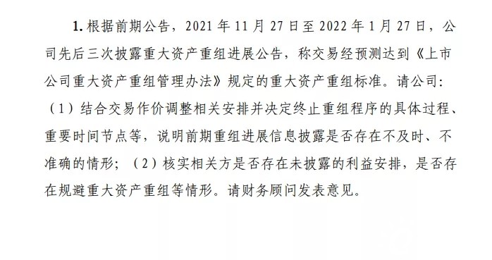 上交所表示,請福萊特結(jié)合交易作價調(diào)整相關(guān)安排并決定終止重組程序的具體過程、時間節(jié)點等,說明重組信息披露是否存在不及時和不準確的情形。核實相關(guān)方是否存在未披露的利益安排,是否存在規(guī)避重大資產(chǎn)重組等情形。