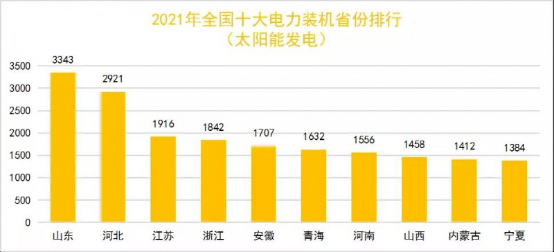 全國太陽能發(fā)電裝機容量分布圖如下所示。