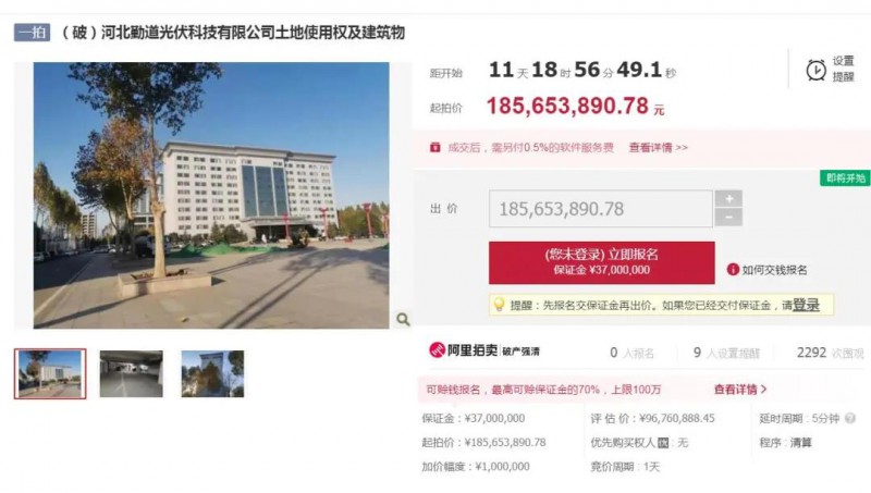 原標題:約2.24億元起拍價 一批光伏設備、土地使用權及建筑物即將拍賣