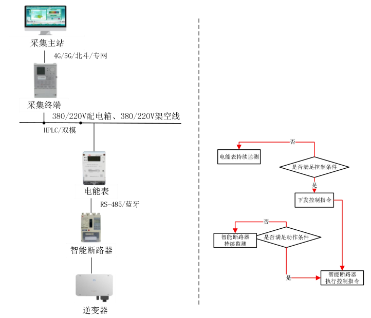 要實(shí)現(xiàn)上述目標(biāo),低壓分布式光伏計(jì)量采集需要安裝的主要設(shè)備包括:采集終端、智能電能表、電流互感器、智能斷路器、防/反孤島保護(hù)裝置等