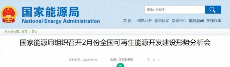 會(huì)議圍繞研究促進(jìn)2022年風(fēng)電光伏開(kāi)發(fā)建設(shè),聽(tīng)取了上次月度形勢(shì)分析會(huì)意見(jiàn)建議落實(shí)情況及全國(guó)可再生能源電力發(fā)展情況匯報(bào),與會(huì)單位反映了大型風(fēng)電光伏基地項(xiàng)目并網(wǎng)和送出工程、林草地使用、項(xiàng)目核準(zhǔn)、選址調(diào)整、項(xiàng)目整合等問(wèn)題,并提出了相關(guān)建議。2022年風(fēng)電光伏發(fā)展開(kāi)局良好,1月份全國(guó)風(fēng)電光伏新增裝機(jī)超過(guò)1200萬(wàn)千瓦,風(fēng)光電消納利用率保持在較高水平。