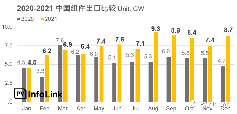 下半年進入了傳統(tǒng)的市場旺季,但是受到產(chǎn)業(yè)上游的瓶頸,造成整體供應(yīng)鏈價格上升,以及中國的能耗政策影響,進一步推升了組件的價格,高昂的海運價格也增加了廠家的負擔(dān),終端在獲利考慮下需求暫緩,采取了包括延后發(fā)貨與重新議價等措施,導(dǎo)致了傳統(tǒng)旺季的下半年,中國組件出口卻呈現(xiàn)了下降的趨勢。