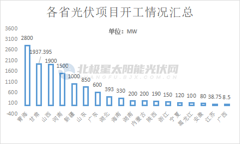 第一季度,淡季不淡。國家能源局通報數(shù)據(jù)顯示,1~2月新增光伏裝機10.86GW,同比增長234%,3月繼續(xù)高歌猛進(jìn)。據(jù)北極星太陽能光伏網(wǎng)跟蹤統(tǒng)計,截至目前已經(jīng)有52個、總規(guī)模約12.4GW光伏項目陸續(xù)發(fā)布開工信息。分地區(qū)來看,其中青海、甘肅、山西、河南、新疆5地光伏開工項目均超1GW,海南、湖南開工項目均超300MW。