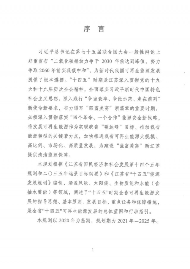 “十四五”期間,江蘇將穩(wěn)妥有序推進風電發(fā)展,優(yōu)化風電發(fā)展結構,重點發(fā)展海上風電,因地制宜發(fā)展光伏發(fā)電,全力推進分布式光伏發(fā)電,穩(wěn)步有序開展海上光伏建設,加快推進“光伏+”綜合利用,多元化發(fā)展生物質發(fā)電,科學推進抽水蓄能開發(fā),高效多元推動非電利用。到2025年,省內可再生能源占全省能源消費總量比重將達到15%以上,全省可再生能源裝機達到6600萬千瓦以上,占總裝機比重超過34%。其中,風電裝機達到2800萬千瓦以上,光伏發(fā)電裝機達到3500萬千瓦以上,生物質發(fā)電裝機達到300萬千瓦以上。