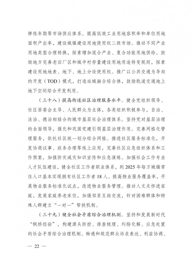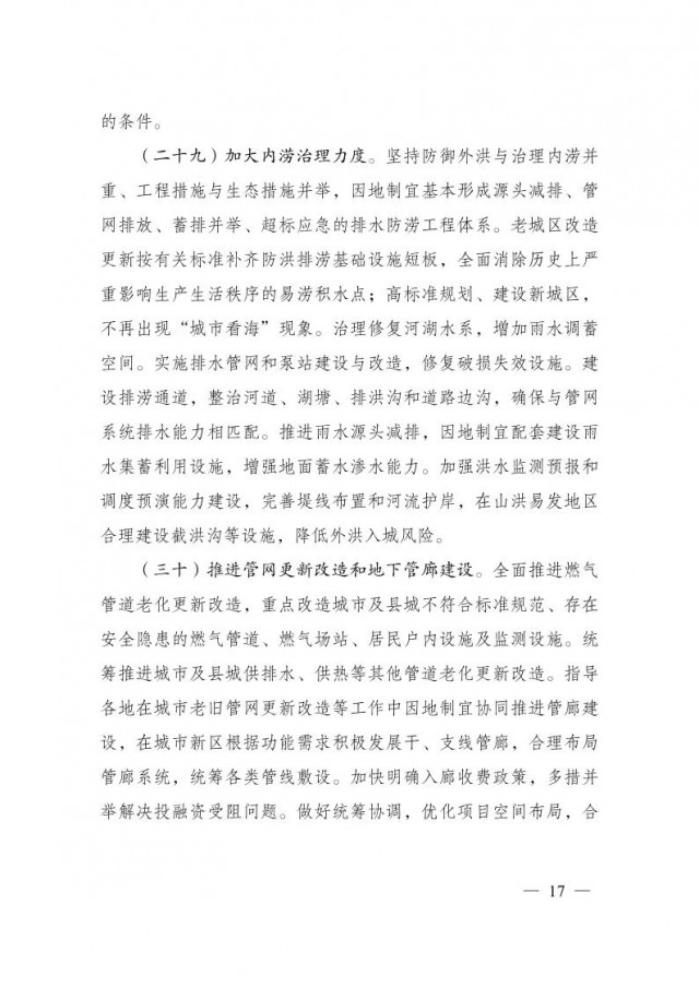 《方案》提出,到2025年,城市可持續(xù)發(fā)展能力明顯增強(qiáng),城鎮(zhèn)開發(fā)邊界全面劃定,新增建設(shè)用地規(guī)模控制在2950萬畝以內(nèi),城市內(nèi)澇治理取得明顯成效,城市燃?xì)獾裙艿览匣赂脑焐钊胪七M(jìn),能源資源利用效率大幅提升,城市黑臭水體基本消除,地級及以上城市空氣質(zhì)量優(yōu)良天數(shù)比率提高到87.5%,城市建成區(qū)綠化覆蓋率超過43%。系統(tǒng)完備、科學(xué)規(guī)范、運(yùn)行有效的城市治理體系基本建立,治理能力明顯增強(qiáng)。