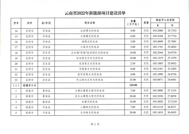 根據(jù)項(xiàng)目清單來看(附件查看清單),昆明市193.8萬千瓦、昭通市129.9萬千瓦、曲靖市440.6萬千瓦、玉溪市216.89萬千瓦、保山市194.8萬千瓦、楚雄州556.46萬千瓦、紅河州206.6萬千瓦、文山州231萬千瓦、普洱市101.5萬千瓦、西雙版納州91.5萬千瓦、大理州259.99萬千瓦、德宏州56.1萬千瓦、麗江市163.3萬千瓦、怒江州87.1萬千瓦、臨滄市271萬千瓦。