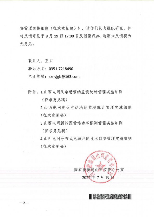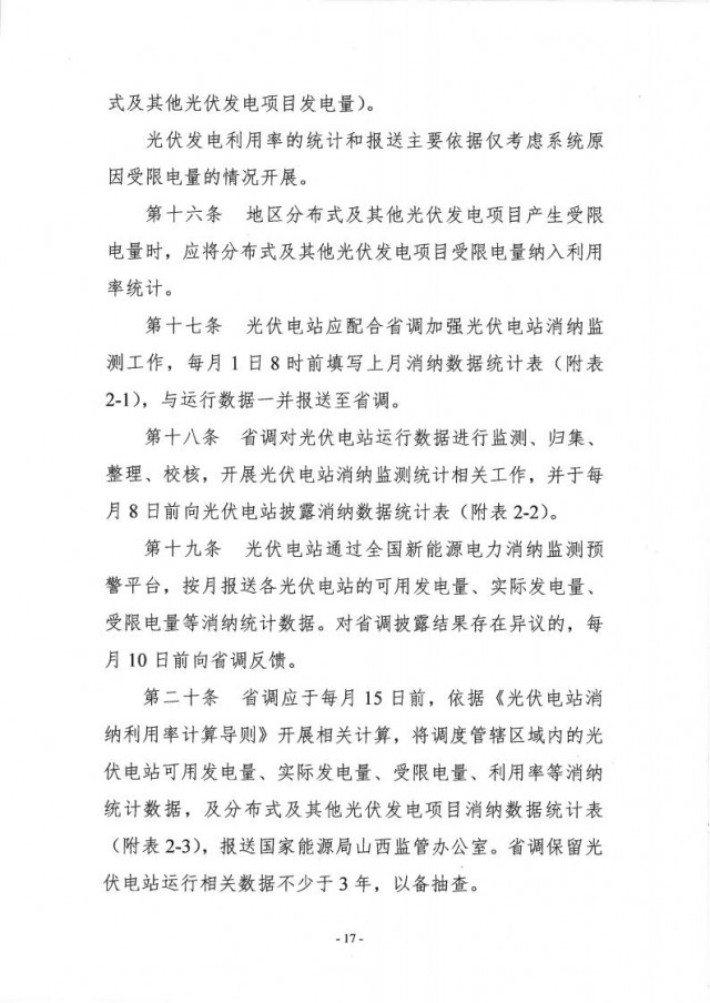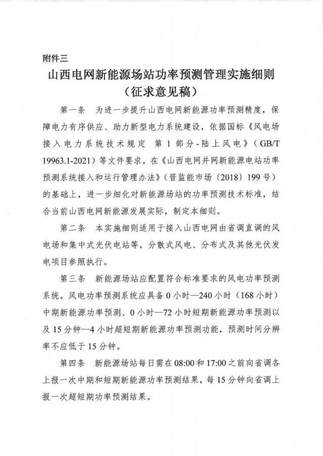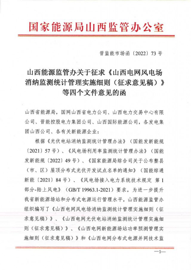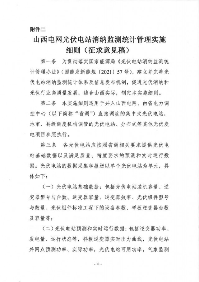 7月26日,山西能源監(jiān)管辦關(guān)于征求《山西電網(wǎng)風(fēng)電消納監(jiān)測(cè)統(tǒng)計(jì)管理實(shí)施細(xì)則(征求意見(jiàn)稿)》等四個(gè)文件意見(jiàn)的函,包含《山西電網(wǎng)光伏電站消納監(jiān)測(cè)統(tǒng)計(jì)管理實(shí)施細(xì)則(征求意見(jiàn)稿)》印發(fā),意見(jiàn)稿指出,本實(shí)施細(xì)則適用于并入山西電網(wǎng)、由省電力調(diào)控中心(以下簡(jiǎn)稱(chēng)“省調(diào)”)直接調(diào)度的集中式光伏電站,地市、縣級(jí)調(diào)度機(jī)構(gòu)調(diào)管的光伏電站、分布式等其他光伏發(fā)電項(xiàng)目參照?qǐng)?zhí)行。