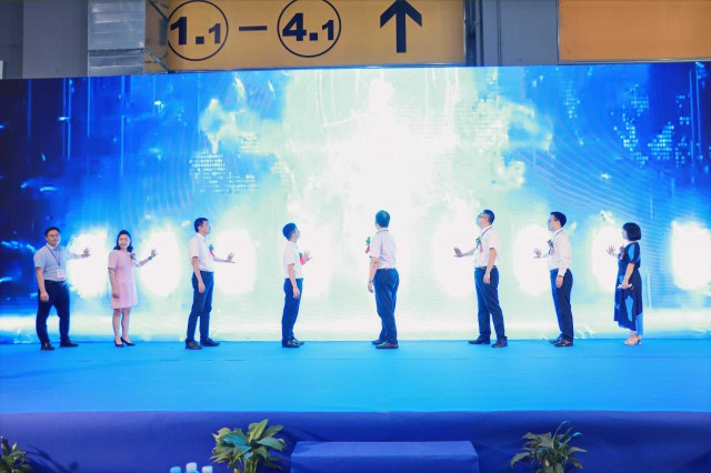 此次展會,湖南紅太陽光伏產品事業(yè)部總經理凌付榮(右三)受邀出席2022中國太陽能光伏行業(yè)發(fā)展高峰論壇開幕儀式,與行業(yè)內精英共同見證太陽能光伏行業(yè)的這一具有代表性的時刻。