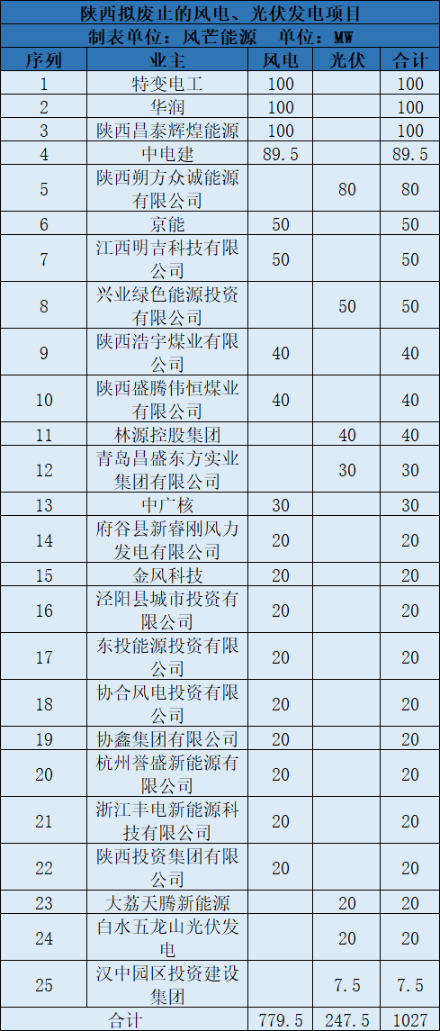 根據(jù)整理,從業(yè)主角度看,目前特變電工、華潤、陜西昌泰輝煌能源分別被廢止了100MW風電項目。