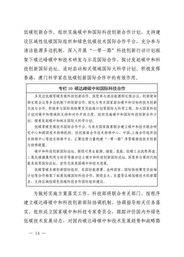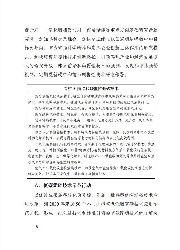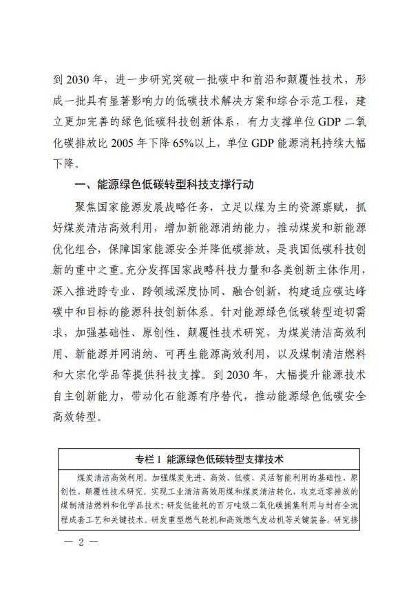 方案就加強(qiáng)科技支撐碳達(dá)峰碳中和涉及基礎(chǔ)研究、技術(shù)研發(fā)、應(yīng)用示范、成果推廣、人才培養(yǎng)、國際合作等多個(gè)方面提出了10項(xiàng)具體行動,到2030年,大幅提升能源技術(shù)自主創(chuàng)新能力,帶動化石能源有序替代,推動能源綠色低碳安全高效轉(zhuǎn)型。