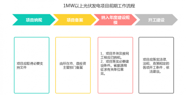 1.1MW以上光伏發(fā)電項目由省能源局發(fā)布規(guī)劃和年度建設(shè)規(guī)模,由屬地進(jìn)行備案,流程圖如下: