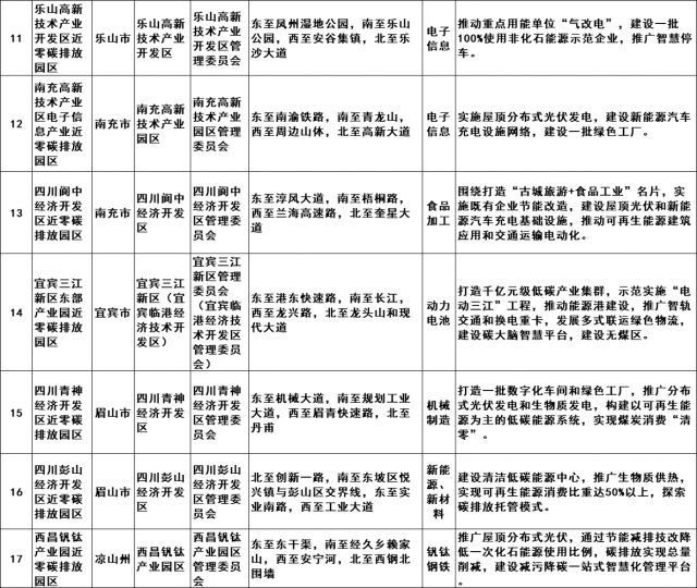 四川省近零碳排放園區(qū)試點(diǎn)擬確定名單公示
