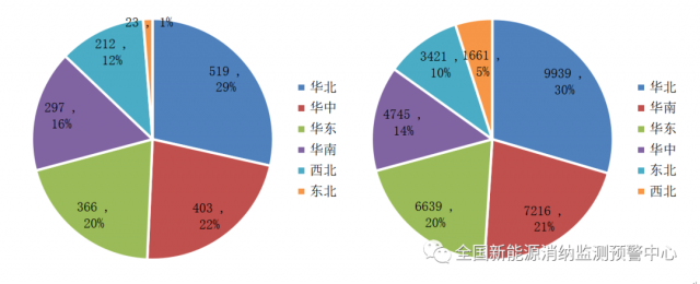 二季度各區(qū)域風(fēng)電新增(左)、累計(jì)(右)裝機(jī)(萬(wàn)千瓦)