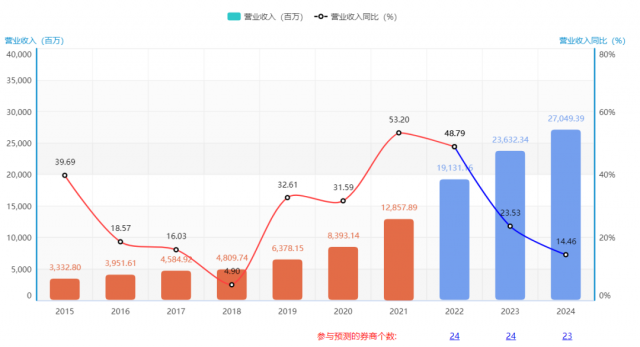 某靠譜券商預(yù)計全年有望達14-15億平膠膜出貨量,奠定全年業(yè)績的基本盤。背板業(yè)務(wù)方面,在分布式需求高漲背景下公司背板產(chǎn)銷放量,預(yù)計全年出貨有望達1-1.5億平。此外,公司在多項電子新材料領(lǐng)域?qū)崿F(xiàn)國產(chǎn)化替代進程,持續(xù)拓展增量市場。按19%膠膜毛利假設(shè),預(yù)計福斯特2022、2023年利潤分別為28.5、36.3 億元,今天收盤889.2億市值,對應(yīng)當前PE分別為31、25倍。