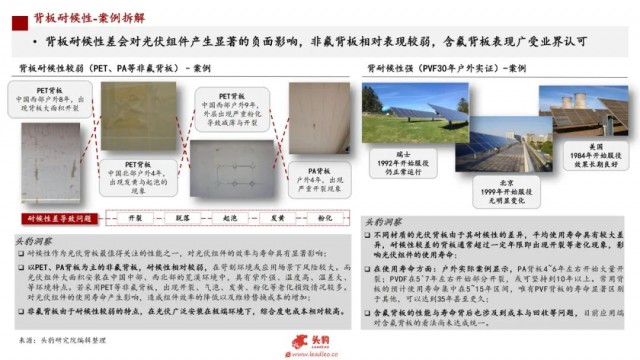 背板耐候性差會(huì)對(duì)光伏組件產(chǎn)生顯著的負(fù)面影響,非氟背板相對(duì)表現(xiàn)較弱,含氟背板表現(xiàn)廣受業(yè)界認(rèn)可。