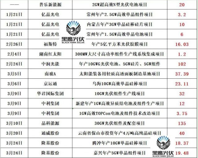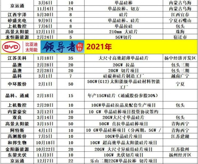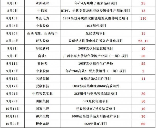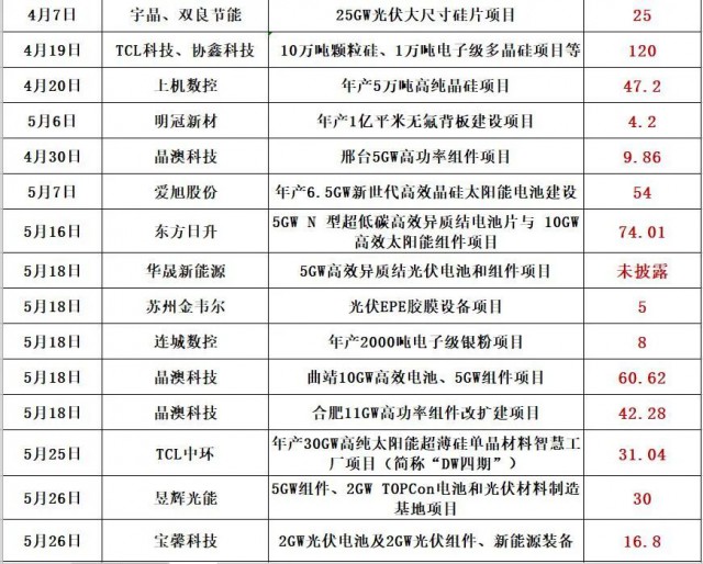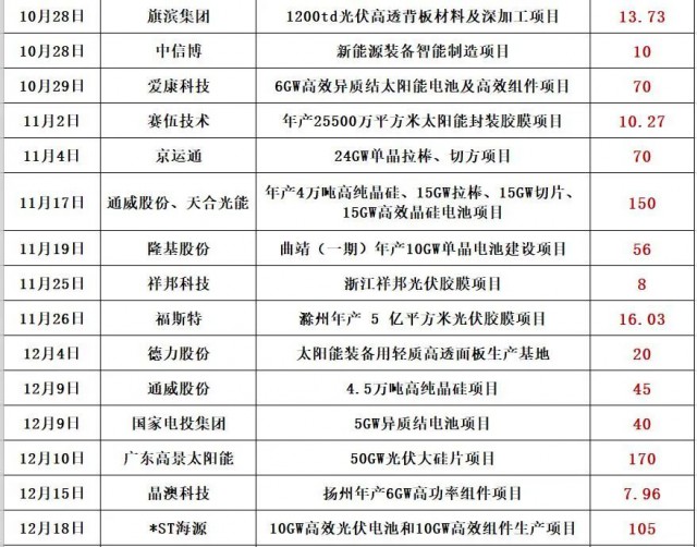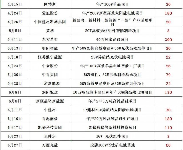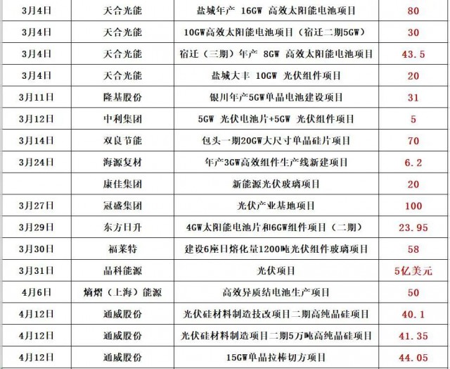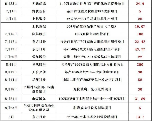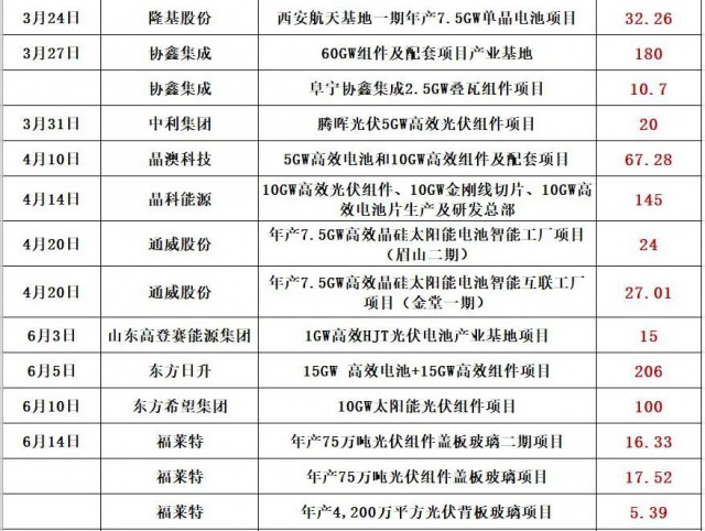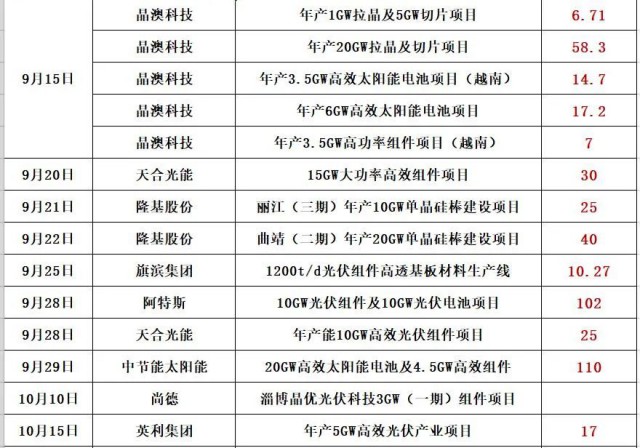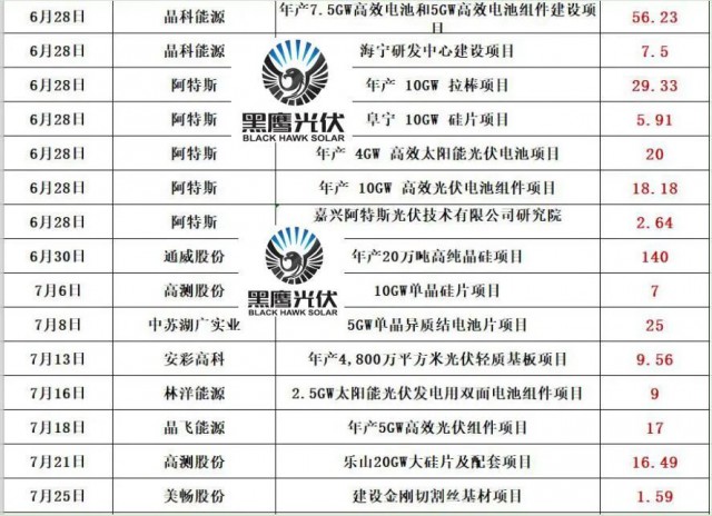 最新的消息是,通威股份擬在鹽城市投資25GW高效光伏組件項目,預計固定資產投資約40億元。同期消息,天合光能擬投資60億,在淮安簽約15GW電池片和15GW組件項目!
